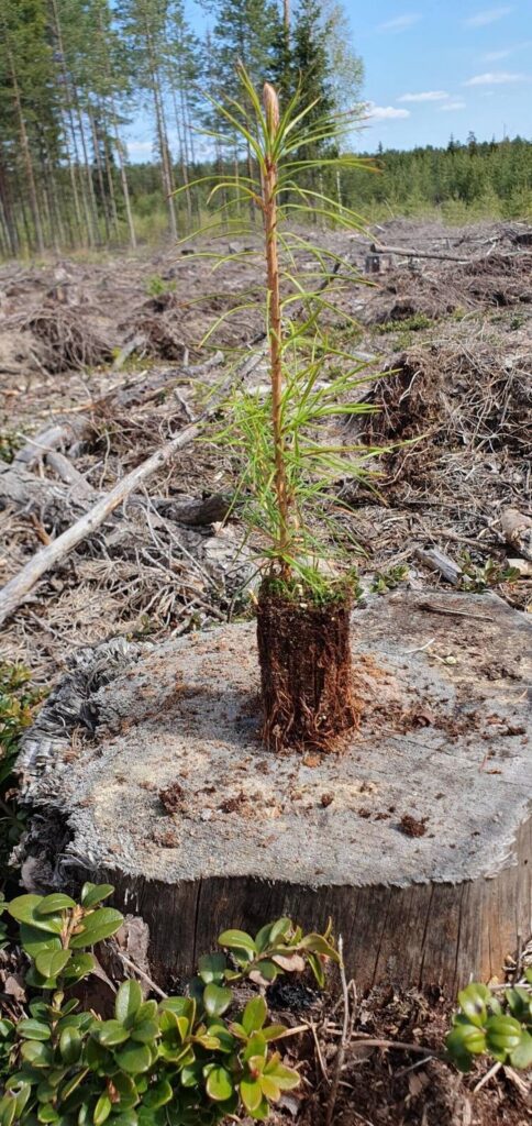 Tavapärane metsauuenduseks kasutatav männi konteinertaim ootab metsamulda istutamist. Selle noore puu tulevik sõltub paljuski teda ümbritsevatest seentest. Autor/allikas: Jürgen Aosaar/EMÜ